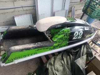 Jet ski Kawasaki 750 SX con diseño inspirado en Monster Energy. - Número 22 en el lateral. - Asiento blanco. - Logos de DC Shoes y Astars. -Más info preguntad.