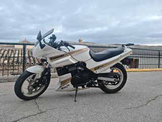 Se vende Kawasaki GPZ 500S, también conocida como Kawasaki Ninja 500. 140.000 km Estado mecánico: Funciona correctamente Uso reciente: Arrancada y utilizada todos los meses en finca privada ITV y seguro: No tiene actualmente Historial: Moto importada, estuvo circulando en España con todas las ITV pasadas hasta 2014 Tras haber estado parada durante un tiempo, se ha reparado el carburador, sustituyendo todas las juntas y diafragmas, quedando lista para usar Desperfectos: Desperfectos en carenado e intermitentes, debidos a una caída en parado únicamente Óxido en el depósito, visible en la última imagen, no impide funcionamiento.