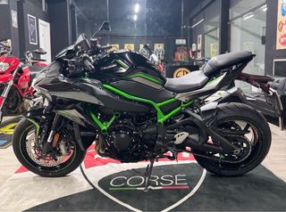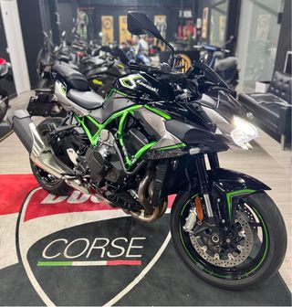 Moto Kawasaki ZH2 en color negro y verde. Diseño deportivo y agresivo. - 9000kms - Suspensión delantera y trasera ajustables. - Frenos de disco de alto rendimiento. - Iluminación LED completa.