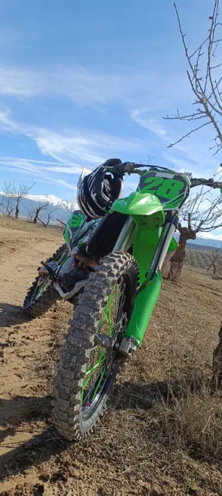 Moto de cross Kawasaki con número 28. - Kawasaki 250 4t - Año 2015 - Precio no negociable - Bien conservada - No hago cambios -No tiene arranque eléctrico