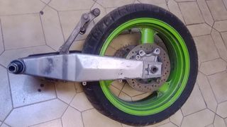 Basculante con rueda trasera completa y bieleta montadas. Incluye disco trasero y plato usables. Estaban montados en una ZXR750R de 1991, compatibles con ZXR750 de 1991 y 1992 modelos K o J. Algunas marcas de uso pero nada grave. Ideal para repuesto, restaurar una moto o correr en clásicas. No hago envíos, no negocio ni pierdo el tiempo, internet tiene toda la info necesaria sobre estas piezas y sus modelos de moto compatibles. Bloqueo a mareantes. Palabras clave: Superbike, NC30, OW01, FZR750R, VFR750R, HONDA, YAMAHA, SUZUKI GSXR750, Despiece Kawasaki, ZXR750K