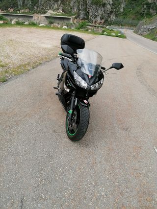 Está en perfecto estado de todo. Limitada en documentación para carnet A2. Revisión hecha hace 4 meses, se le cambió, aceite, filtro aceite, filtro de aire, batería y líquido de frenos. Rueda delantera puesta hace 300km y la trasera a medio uso. Escape AKRAPOVIC valorado en más de 600€, homologado con su documentación. Igualmente entrego el original. Indicador de marchas y espejos retrovisores originales de Kawa. Maneras regulables. Itv hasta Septiembre 2026 Se vende por falta de uso. Por favor sólo gente interesada en lo que pone el anuncio. Se admite Revisión mecánica