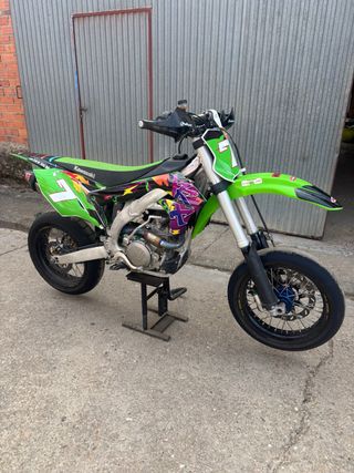 Moto Kawasaki KXF 450 de Supermotard del año 2016. - Modelo: KXF 450 - Año: 2016 Moto preparada para Supermotard, se entregarían ruedas de motocross también. Frenada brembo serie oro 4 pistones Cartuchos ohlins Escape pro circuit de titanio Mapas de potencia y launch control Único dueño, la moto tendrá 40 horas Se entrega tal y como está, con cartuchos, escape etc, esta para no hacerle nada ahora mismo. abstenerse ofertas absurdas crf Yz Yzf rm rmz