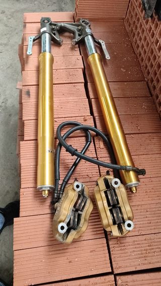 juego de pinzas delanteras Kawasaki zxr6 con latiguillos y pastillas.#despiece,kawasaki, zxr6,z750,ninja