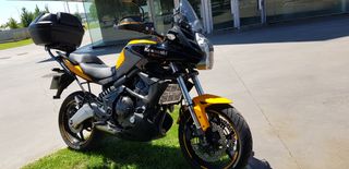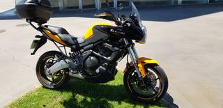 Moto Kawasaki Versys 650 en color amarillo y negro. 69cv. Cuenta con top-case para dos cascos. Año 2013, 52000kms. Muy cuidada. Neumático trasero casi nuevo, delantero a medias. Kit de trasmisión cambiado. Mantenimiento horquilla hecho (retenes). Envío video en HD por watch app.