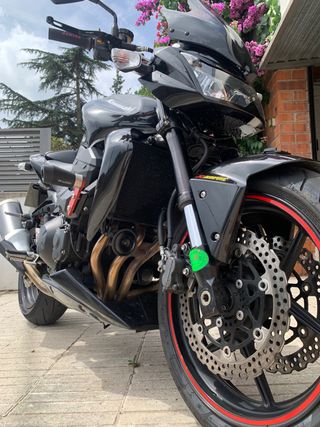 ESCUCHO OFERTAS. ❗️ 106cv 23.000km Ruedas 95% recién cambiadas MICHELIN ROAD 6 (360 €) Moto Kawasaki Z750 2008 en color azul oscuro metalizado. (la pintura de fábrica) La única pega que tiene la moto es que le hice un vinilo negro mate con spray y hay que arreglarlo. - Diseño deportivo y agresivo. - Cúpula delantera negra ahumada - Retrovisores - Anticaidas escape y soporte laterales - Embellezedores liquido de freno. - Protector horquilla. - Protector radiador Escape scproject no homologado (0 problemas por sonido), entregó también el original, tiene el chip de anulación de válvula mariposa. (66€)