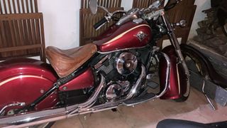 Moto Kawasaki VN 800 Drifter en color rojo. - Asiento de cuero marrón. - Detalles en color crema en el depósito. - Cromados brillantes en motor y escape.