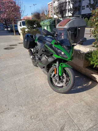 Moto deportiva Kawasaki 1000SX en llamativos colores negro y verde. - Diseño deportivo. - Equipado con maletas laterales. Extras: Akrapovich (+original) y dos asientos (uno con espumaa confort), y "descam" cámara delantera y trasera integrada. 21mil km de 6/2023. Revisiones y mantenimiento al día en concesionario oficial. En perfecto estado, pero se vende por poco uso guardada siempre en garaje.