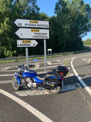 Moto custom Kawasaki VN900 en perfecto estado, recién revisada. - Diseño custom. - Motor 900cc. - Asiento doble. - Maletas laterales de cuero. - Parabrisas alto.