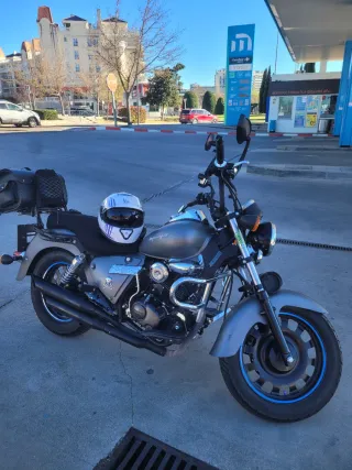 Moto Keeway Superlight 125cc del año 2015. Un estilo cruiser que no pasa desapercibido. - Moto en color negro mate. - Transmisión manual. - ITV hasta 2028. - Revisión pasada el 15 marzo 2026 Precio negociable Regalo casco con la moto Poco más de 10.000km