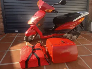 Se vende moto Kenrod Yamaha de color rojo, ideal para desplazamientos urbanos. Incluye dos accesorios de transporte. Pasará la ITV el 7 de enero 2026. - Moto Kenrod Yamaha - Color rojo. - Incluye caja trasera y bolsa térmica sin uso.