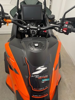 Moto KTM 1290 Super Adventure S del año 2024. Diseño deportivo y moderno. - Color gris y naranja. - Estilo de moto de aventura. Moto matriculada en noviembre de 2024. Garantía oficial hasta noviembre de 2029. Siempre guardada en garaje. Revisión del año pasada recientemente en taller oficial KTM. Extras: - Asiento conductor y pasajero calefactables. - Tech Pack. Posibilidad de comprar con top case Givi outback trekker evo 58 litros, respaldo, y soporte para móvil quadlock. Precio negociable. Telefono contacto: 679009964