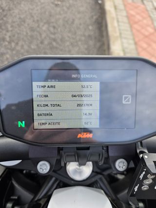 Impecable, muy cuidada. 40.000kms. Año 2021. Único propietario. Libre de accidentes. Todas las revisiones en servicio oficial KTM. Se admite prueba mecánica. PowerParts: - Paquete track, regulación freno motor, control de arranque en pendiente - Escape Akrapovic con protección térmica en carbono - Discos de frenos Wafe - Manetas de freno y embrague mecanizadas - Tapas mecanizadas depósito frenos y embrague - Guardabarros delantero, trasero, cubrecadena, embellecedores laterales del depósito, tapa de contacto, quijas y deflectores radiador en carbono - Protector motor y eje delantero - Cúpula ahumada - Asiento símil alcántara