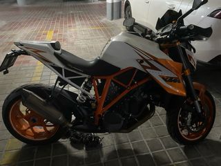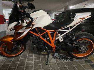 Moto KTM 1290 Superduke R Special Edition del año 2016 con 66000 kms. Equipamiento todo de serie que la diferencia de la normal en: - Pintura blanca y naranja anodizado. - Escape akrapovic homologado y fabricado para este modelo. - Asiento Powerparts original KTM - Cubremabos fibra de carbono KTM (que han sido cambiados por unos mas grandes tb originales de KTM) A parte de estos tiene: - Colín original KTM - Cupula puig para este modeo(no la queda muy bonito pero se nota muchísimo sobre todo en carretera) Entrego protectores de manos originales (fibra) Muy cuidada, aceite con 1000 kms, pastillas nuevas, ruedas al 80%.