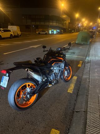 Año 2019. Versión 105cv. 27000km. ITV recién pasada. Bien cuidada, todos los mantenimientos en casa oficial, con facturas. Tiene todos los packs de casa original (quickshifter, modos de potencia, etc) Revisión recién pasada. Kit de arrastre nuevo. Ruedas Metzeler Sportec M5 Interact. Pastillas y líquidos cambiados. Extras: -Asiento de gel original KTM. -Barras de protección. -Colín KTM. -Escape IXIL RACE homologado (pasa ITV). -Kit de pegatinas Motoproworks. -Portamatrículas corto. -Y alguna cosilla más La moto tuvo un arrastre a baja velocidad, de ahí las últimas fotos. No me interesan cambios