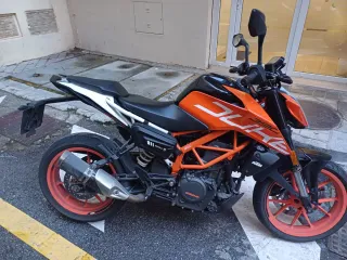 KTM Duke 125 del año 2021 1a mano con 11 000 km. Muy bien cuidada, revisiones completas al día y ITV pasada hasta 2025 y siempre en garaje. Se entrega con escape Akrapovic no homologado 🛠️ Estado • Kilometraje: 11 000 km • ITV pasada en 2025 • Revisiones completas • Funcionamiento 100 % correcto • Presenta marcas leves de uso en algunos componentes (manetas/reposapiés), visibles en las fotos — detalles típicos de uso sin impacto mecánico.