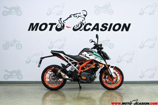 Moto KTM 390 Duke con un diseño deportivo y moderno. - Estilo naked. - Transmisión manual. Mantenimiento al dia neumatico trasero nuevo siempre en garaje del año 2021 filtro k&N de alto rendimiento nuevo porta movil con cargador inalámbrico funcional 10/10 no le falla nada corre demasiado pastillas nuevas traseras la moto esta solo para hecharle gasolina y rodarla pantalla con conectividad bluetooth