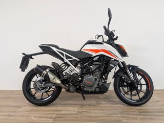 Moto KTM Duke 125 en colores blanco y negro. - Estilo naked. - Transmisión manual.