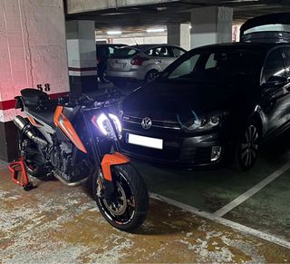 Moto KTM 1290 Super Duke R del año 2018. Diseño deportivo y potente. - Estilo naked. - Transmisión manual. - Combinación de colores negro y naranja. - Asiento powerparts gel - Protector pantalla -Quiftshifter subida y bajada - Techpack -Ruedas con 1000km metzeler m09rr -Aceite y filtro con 1.000km -Manuales y tarjeta de llaves con carpeta - Nunca circuito, uso de paseo de domingo - Nunca caidas, ni en parado, - Kit maletas sw motech (nuevas 500€) Maletas no incluidas (se podría negociar) Acepto cambio por suzuki gsr600 mas diferencia económica