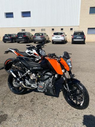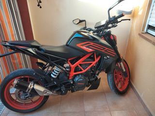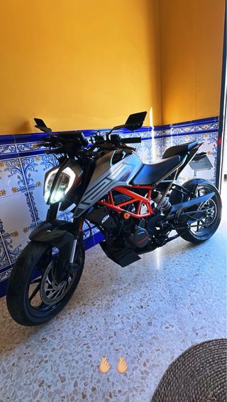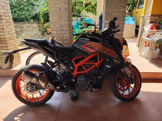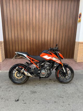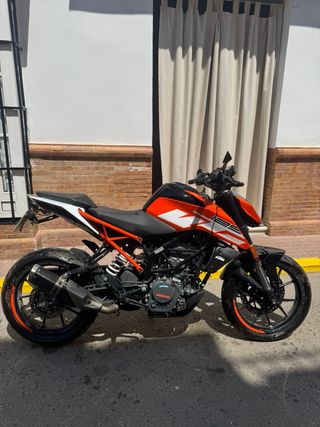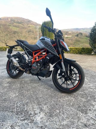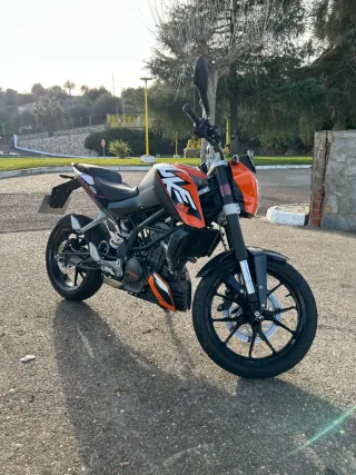 Moto KTM 125 Duke 2023 en perfecto estado. Todos los mantenimientos al dia y realizados en KTM (se aportan facturas de todo). Escape Akrapovic homologado de origen. Se regala supresor de catalizador (no esta montado). Se vende por cambio de cilindrada. Moto utilizada al 90% para ir a trabajar y siempre guardada en garaje.