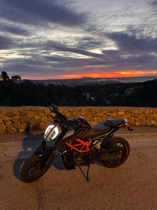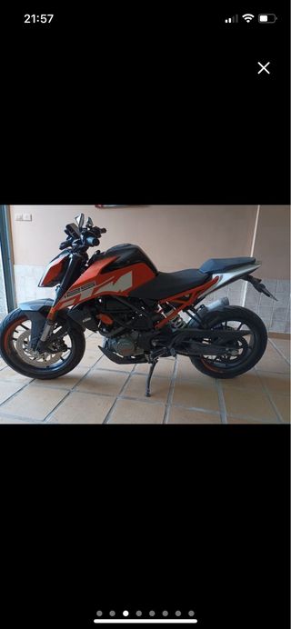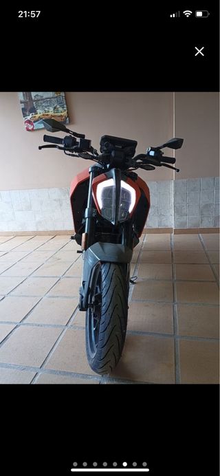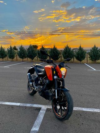 Moto KTM Duke 125cc. En perfecto estado con apenas 9.000 kilómetros, revisión realizada a finales del año pasado junto con el cambio de batería, tiene ITV en vigor hasta 2027, es una moto perfecta para iniciarse en el mundo de las motos y para ciudad. Está prácticamente nueva solamente tiene algunos desperfectos en los plásticos como se puede apreciar en las fotos. Se utiliza diariamente para ir al trabajo y alguna ruta esporádica los fines de semana.