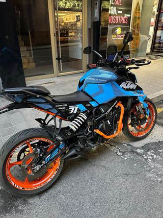 Vendo mi KTM Duke 125cc en perfecto estado por cambio a coche. Soy un conductor cuidadoso y la moto está mimada. -Kilometraje real y verificado: 9.930 km (demostrable con foto del cuadro, ver imagen). -Estado: Impecable, sin caídas ni rasguños significativos. -Extra de valor: Incluye escape LeoVince homologado (entre 400 y 500€ en el mercado actual) (sonido deportivo y estético, entrego papeles de homologación). -Todo de origen: Resto de componentes de fábrica. -Mantenimiento: Al día.