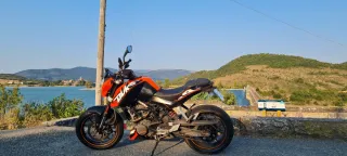 Moto KTM Duke en colores negro y naranja. Recién salida del taller aceite nuevo pastillas y tubo de casa. También doy el akaporbich. Muy muy mimada va perfecta moto muy divertida. - Estilo naked. - Transmisión manual.