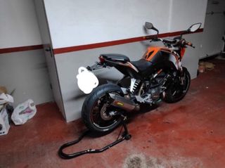 Moto KTM Duke 125 en estilo naked. Fiable y ligera, ideal como primera moto. Año 2012 19.000 km muy cuidada. Línea completa Akrapovic y se entrega también original. Accesorios PowerParts, kit vinilos. Todo al día. Mejor ver. - No cambios- *La moto sigue a la venta mientras el anuncio esté publicado.