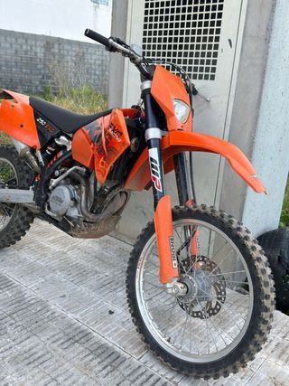 Moto de enduro y motocross KTM 250 EXC de 2 tiempos del año 2006. - Cilindrada: 250cc - Tipo de motor: 2 tiempos - Año: 2006 - Estilo: Enduro, Motocross - km: 4.000 - La vendo porque en 2 años solo hecho mil km... - va perfecta arranca a la primera - reciente se le cambio retenes horquillas y se le monto electro ventilador (tengo facturas) - no tiene itv ni se la pasare por falta de tiempo, entrego todo el kit para pasarla sin problema.