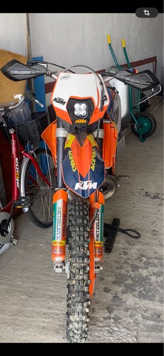 Moto KTM 350 EXC-F del año 2016 297 horas -Cubrecarter -protector radiador -manetas irrompibles -estriberas s3 -suspensión hecha -foco led -electro ventilador -mousse rueda delantera y trasera -arranque con boton y de pata -funda asiento antideslizante -posibilidad de dar con otro juego de plasticos (+100€) -kit itv No mareantes 4900€