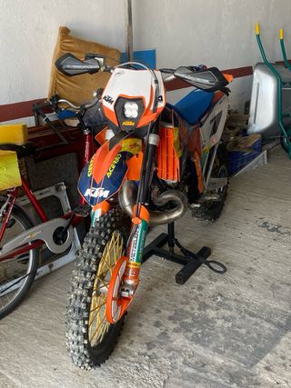 Moto KTM EXC 450. - Mantenimientos al día, hechos cada 10h. - Usada sólo para ocio por senderos y pistas, nada de terrenos ni trialeras. - 330h de uso. - Rueda delantera nueva. - Doy todo el kit para pasar ITV. - Matrícula pequeña. -Protector cárter de aluminio. - La moto va finísima. - Venta por cambio de estilo de moto.