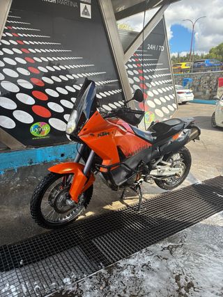 Moto KTM 690 Enduro con muchos extras : Dos depositos Dos escapes Estribera rally Regulador , kit embrague kit cadena nuevos. Dos asientos. Soportes trasero y para dos maletas... Sin extras 3600, con 3950 - Estilo de moto de enduro-trail. - Color naranja y negro con detalles blancos.