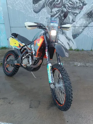 Moto KTM 450 EXC-F Rally VENDO O CAMBIO POR MOTO O QUAD SI FUERA MEJOR APORTARIA DIFERENCIA - Estilo enduro. - Diseño deportivo en naranja y blanco. - Ruedas 80% -Se entrega con maneta de embrague nueva latiguillo nuevo, dos faros, escape de casa, puños nuevos, otro asiento, funda de asiento nueva, manillar nuevo a estrenar. - cambios de aceites y filtros recién hecho - 22horas tiene cilindro y piston