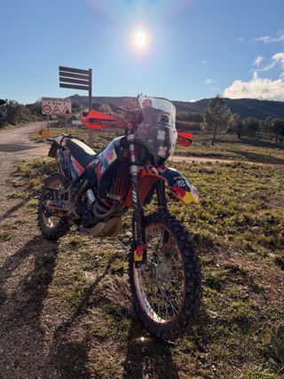 Moto KTM 640 Enduro LC4 del año 2006 con kit Rally. - Moto losta para disfrutar. Y en papeles es trail. - Mantenimiento e ITV al día. - Kit Rally: Neumáticos michelin con mousse, Torre rally 3DPartum con soporte para navegación, mando roadbook bluetooth, deposito de 23lts, piños espuma - Silencioso KTM racing + original para ITV - Carburador restaurado con partes originales. - Radiadores sobredimensionados de aluminio nuevos con manguitos de refrigeración nuevos. - x3 filtros de espuma - Batería nueva desde Enero 2025 con factura. - Kit de arrastre con 2.000km. - Deposito original de 9lt con grifo y plásticos. - +Extras