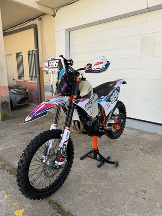 Moto de enduro KTM 350 EXC-F del año 2018. Matrículada en 2017, se entrega con mantenimiento recien echo (aceite y filtro que se lo cambio en cada salida) , esta para usar sin hacerle nada , tal cual las fotos , mousses en las dos ruedas michelin los rally , rodamientos de ruedas nuevos , embrague nuevo , retenes y aceite de suspensión , reglaje de valvulas , pastillas de freno , liquido de frenos y embrague , todo lo anterior con 100km. Se entrega escape akrapovic completo y el de casa para itv. La moto tiene itv pasda hace unos 3 meses