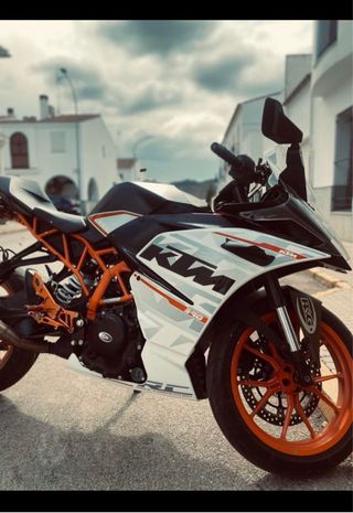 Vendo KTM RC 390 porque voy a cambiar a una moto de mayor cilindrada. Recientemente se le hizo el cambio de aceite, filtro y tamices, se reemplazaron las pastillas de freno delanteras y se instaló un kit de arrastre reforzado (D.I.D). También cuenta con manetas regulables. Incluyo portamatrícula largo y corto, cupula original y supresor de catalizador. 13000KMS No duden en preguntar cualquier duda, gracias. A2 cbr mt zontes 400 500 650 ninja 300 yamaha bandit duke svartpilen deportiva