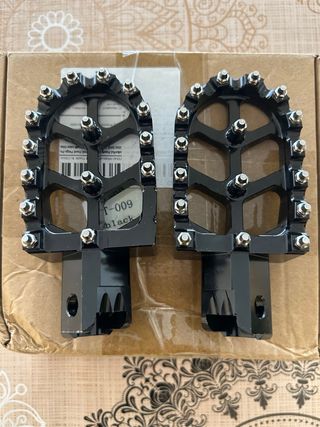 Estriberas universales para moto en color negro. Nuevas a estrenar. - Diseño con púas para un mejor agarre. - Fabricadas en metal resistente. - Incluye un par de estriberas. - Incluye dos pasadores. - Incluye dos muelles. Yamaha Honda Husqvarna Suzuki Rieju DerbiHM MRX RR RMX Senda Kawasaki KTM Ducati Voge Benelli CFMoto Enduro Supermotard Motocross CRF YZ YZF SIXDAYS EXC SXF EXCF SX XC XCW XCFW 50 85 125 150 250 350 450 525 530 300 400 Akrapovic IXIL MIVV FMF Factory GASGAS SMC Kawasaki KTM Ducati Voge Benelli CFMoto Enduro Supermotard Motocross CRF YZ YZF R1 R6 Tenere CBR Yamaha Tenere 700 2019 2022