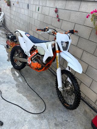 Moto KTM EXC 350F del año 2011. - Color blanco y naranja. - Asiento azul.