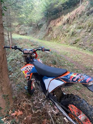 KTM EXC 250 2t - Pistón recién cambiado con 0h - Rueda sin estrenar Enduro medium - Tubliss recién puesto junto la rueda - Arranque a boton - Radiadores sobredimensionados. - Protector de radiadores. - Escape fmf. - Protector de cárter completo. - Tijas mejoradas más grandes. - Suspensiones hechas hitech. - Revisiones siempre al día y sus cambios de aceite al de 20 horas. Preguntar sin compromiso , precio negociable.
