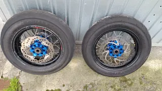 Se venden llantas supermotard de 12 pulgadas para KTM 85. Incluyen discos de freno. - Llantas de 12 pulgadas. - Compatibles con KTM 85. - Discos de freno incluidos.