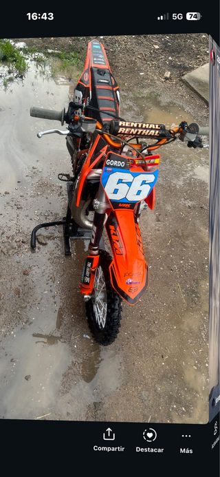 se vende Espectacular moto KTM SXF 250 del año 2006, en excelentes condiciones, Lista para rodar, motor recien hecho marca athena (tengo factura), aceite castrol 10w50 y filtro aceite y aire recien cambiados, aditivo antifriccion para el aceite, bujia cambiada, pastillas delanteras cambiadas, cadena, platos y tensores recien cambiados, cable gas y aire cambiado, neumaticos recien montados dunlop, puños ktm y detalles naranja ktm, se cambia por coche o moto de mi interés