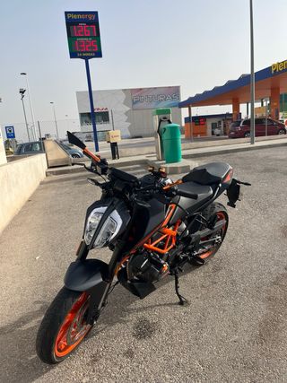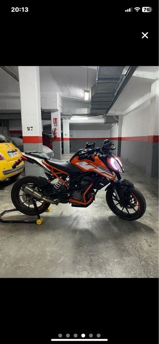 KTM Duke 125 (2017) – 38.000 km Se vende KTM Duke 125 del año 2017, perfecta para A1 o como primera moto. Mantenimiento al día y usada principalmente para desplazamientos urbanos. Estado general: •Motor funcionando sin problemas y revisiones al día. •Neumáticos al 50% de vida. •Cadena para cambiar (imprescindible). •La chapa lateral izquierda está raspada y el botón de largas está ligeramente roto (defecto estético, funcionan perfectamente). Extras y entregas: •Se entrega con retrovisores de serie. •También incluyo el escape original. •Porta matrículas corto homologado •intermitentes LEDS