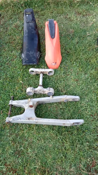 despiece de algunas piezas de una Ktm exc 2012 careta delantera basculante trasero horquilla manillar guarda barro trasero guarda barro delantero cubre cárter tanque de gasolina asiento tapizado