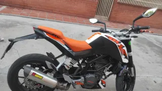 Motocicleta KTM Duke 125 del año 2014. Siempre a dormido en garaje i esta muy bien cuidada, tiene 43.000km. Ultima revision en mecanico a los 43.000 (se acaba de hacer). Extras: -linea completa dominator (no homologado) -retrovisores -porta matriculas corto homologado -pegatinas de las ruedas Se entrega con retrovisores i linea de escape de serie.
