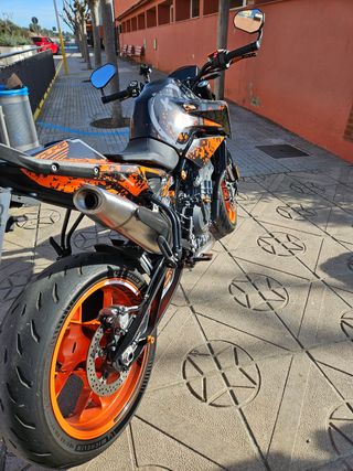 Moto KTM Duke 790 con 105cv del año 2020. Diseño deportivo y llamativo. -Decoración personalizada con vinilos valorados en 600€. Se pueden quitar sin problemas y dejar la moto de serie, estos vinilos protejen el chasis original. -Con extras ktmpowerparts. Como tapones en aluminio y manetas de freno y embrague ktm regulables. -ITV en vigor 2026 -Muy mimada, revisiones en ktm oficial en maquinamotors manresa, historial de revisiones en KTM, guardada en garaje privado. -Kit de portamatriculas y escape homologado para itv, asiento trasero. -Neumaticos MICHELIN Power GP -21.000km.
