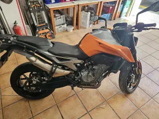 Moto KTM 790 Duke en excelente estado, lista para rodar. - A2 - Año 2024 - 14.000 km - Diseño naked deportivo - Mantenimiento recién hecho en servicio oficial (demostrable) con aceite Motul 7100, líquidos nuevos y pastillas Galfer sintetizadas. -Neumáticos Bridgestone S22 NUEVOS (1000km). -Extras (+1.500€): Línea completa Arrow Pro-Race, Filtro nuevo, Repro a 110cv, Gestión de temperatura mejorada (no se calienta), Porta corto. -Entrego todo el material de serie. -Te llevas una moto lista para rodar 2 años sin gastar nada, que anda más que la de serie y con la garantía sellada.