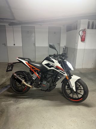 Moto KTM Duke 125 en excelentes condiciones, como nueva. -Modelo KTM Duke 125. -Está en perfecto estado. -Color blanco y naranja. Cambio de aceite hechos siempre cada 3000 kilometros moto mimada al detalle y siempre durmiendo en garaje. Doy todas las piezas de casa y un par mas de piezas para ponerla al gusto moto con muchos extras. Actualmente tiene 22 mil kilometros. Neumaticos recien cambiados michelin 2ct Escape ackrapovick original portamatriculas puig cubre manetas ktm original todas las tapas ktm original
