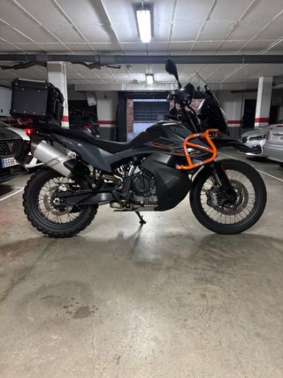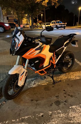 Moto KTM 890 Adventure en color negro y naranja. - Guardabarros delantero y trasero. - Parabrisas. - Protector de motor naranja. - Maleta trasera negra. Año 2021 con pack rally(modo rally y quickshifter)tiene 25000km Puños calefactables y control de crucero,le queda garantia de maquina motor hasta septiembre