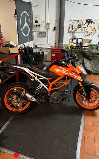 Moto KTM Duke 125 en perfecto estado. Está prácticamente nueva y muy bien cuidada. se vende por no usar. Siempre en garage . - Modelo Duke 125. - Color naranja y blanco. - Diseño deportivo. -motor con 9000km -recien pasada itv hasta agosto 2027 - se regalia catalizador y 3 tubos y petacas diferentes -pneumaticos Nuevos michelin -portamatriculas de serie -pegatinas -protectores pantalla -carpeta Ktm con manual y todas facturas - 2 llaves -manetas extra -portamobiles shad -bateria extra