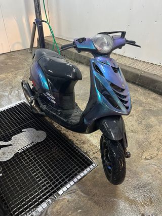 Se vende scooter Zip SP con refrigeración líquida. - Bomba de agua electrica -Variador malossi - Color camaleon - Diseño deportivo -Top negro 70cc -Escape yasuni r pro homologado -Cigueñal top reforzado -Itv Julio 2027 -Tulipas led nuevas homologadas -17,5 Se entrega con escape de serie Con ponerle los topes y el escape de serie pasa itv Se acepta cambio por una de marchas Precio un poco negociable No leer: Derbi Rieju Zip Jog Sherco Ktm Yz Kx Aerox Yamaha Piaggio